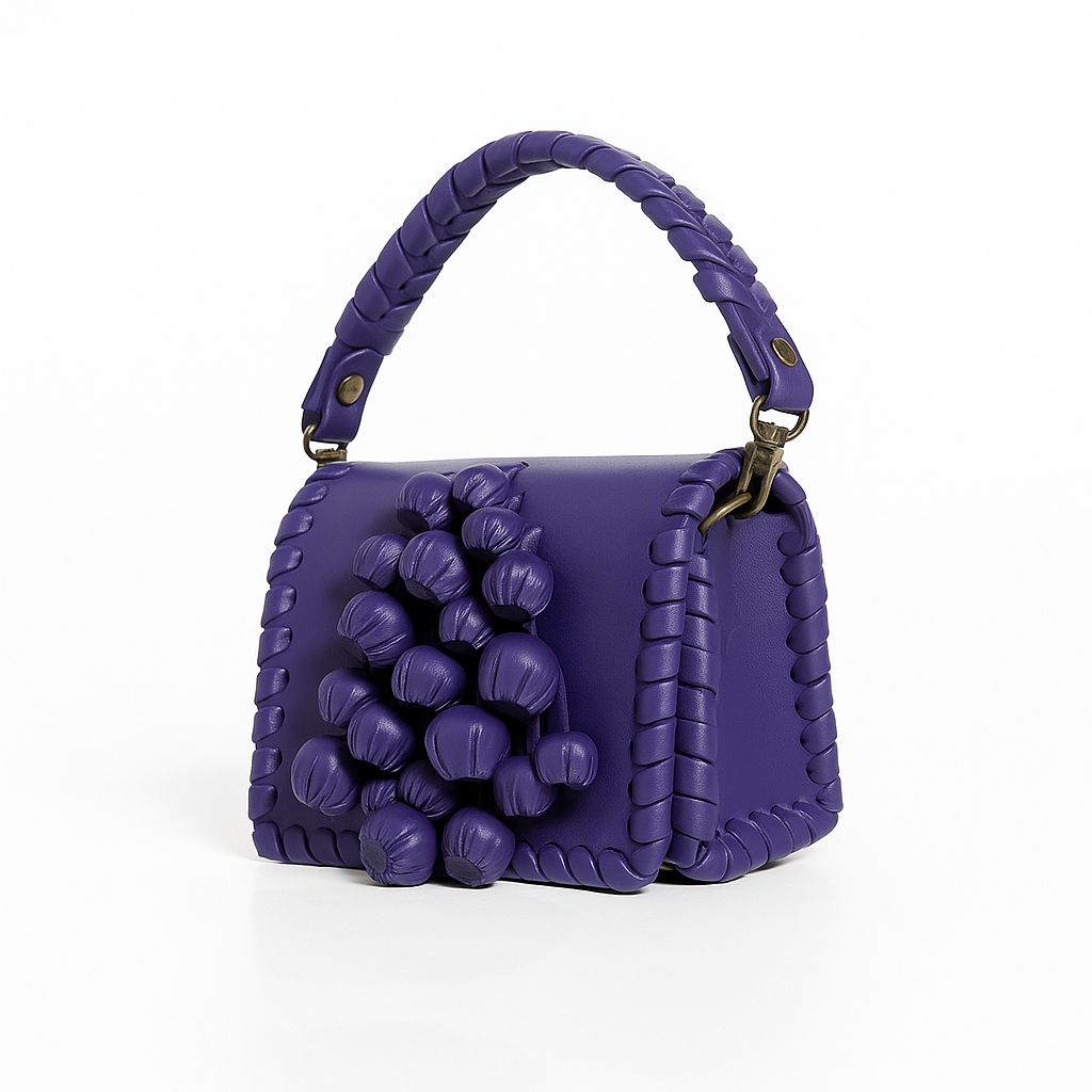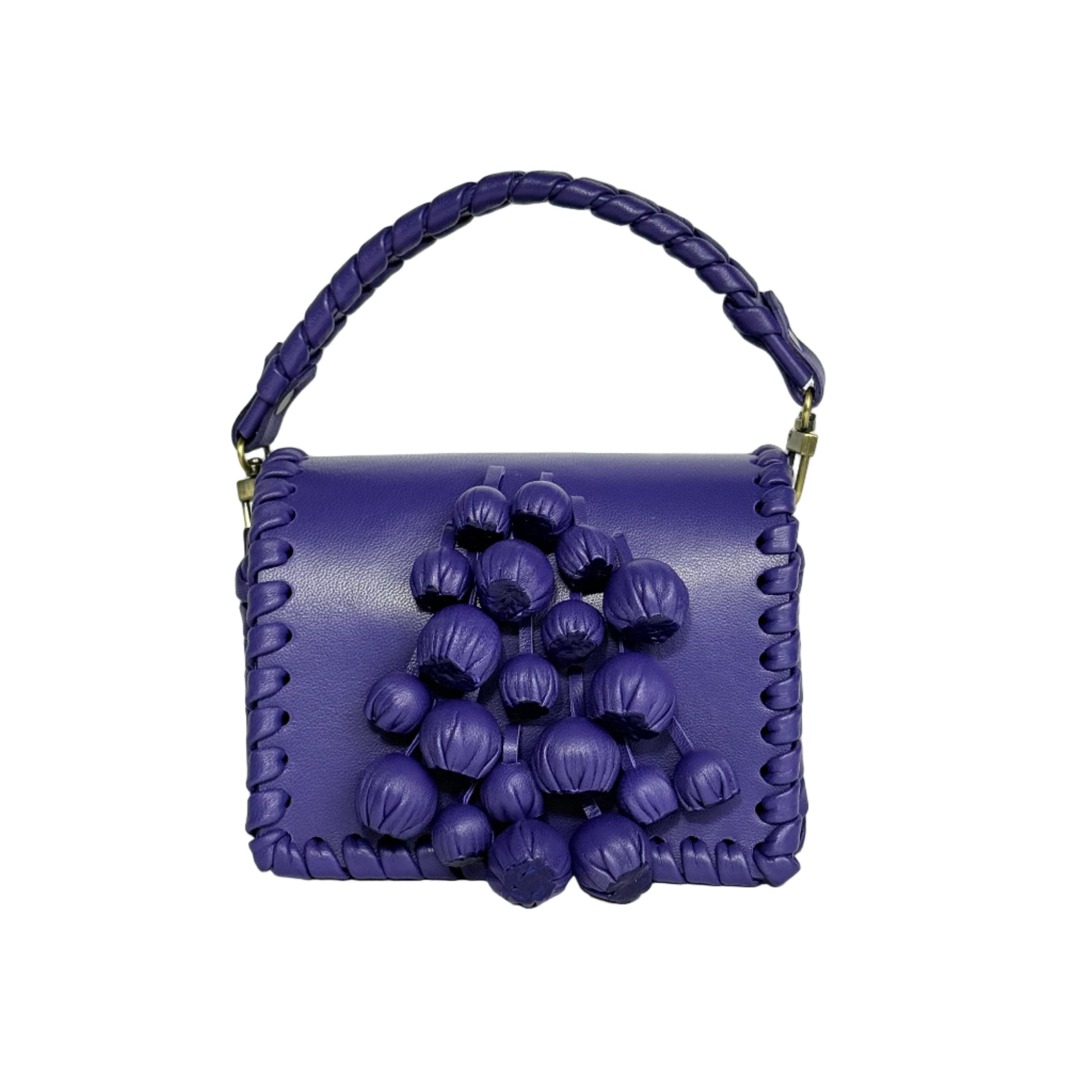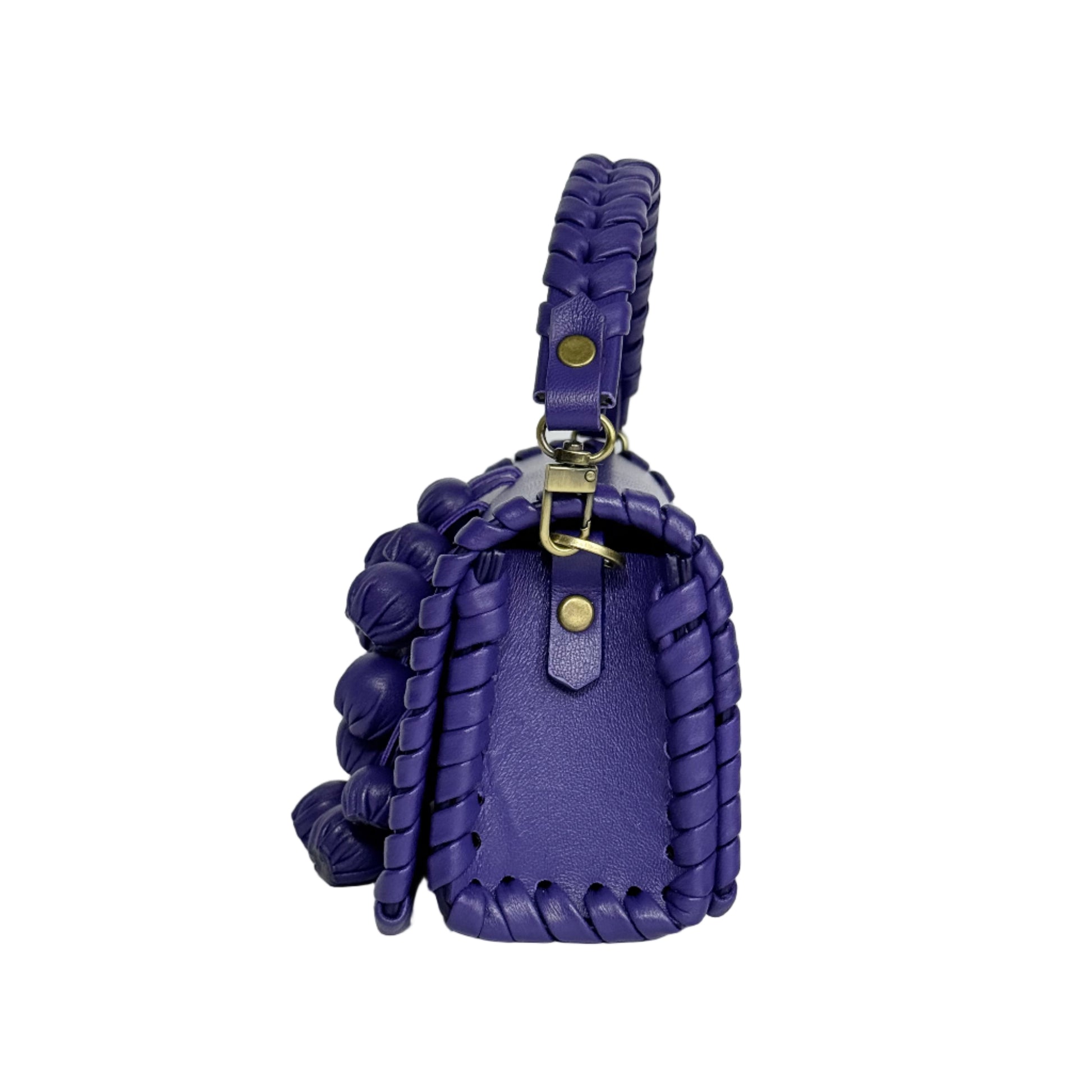 We are thriller to reintroduce the Neomie Demay. This beauty has been away for quite awhile, but she's back in new bold fall colors. It features our signature hand sculpted leather balls cascading down the middle of the bag, with hand lacing around the exterior and a matching removable hand laced top handle, crossbody strap.